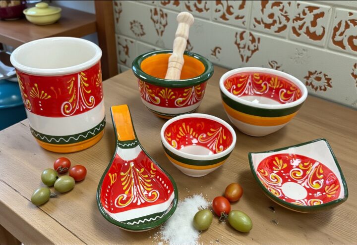 This colourful Kitchen Utensil Holder is ideal for keeping all those utensil you always need to hand and a great addition to the set. Hand Painted in Andalusia by artisan potters – Dishwasher, Microwave and Food Safe.